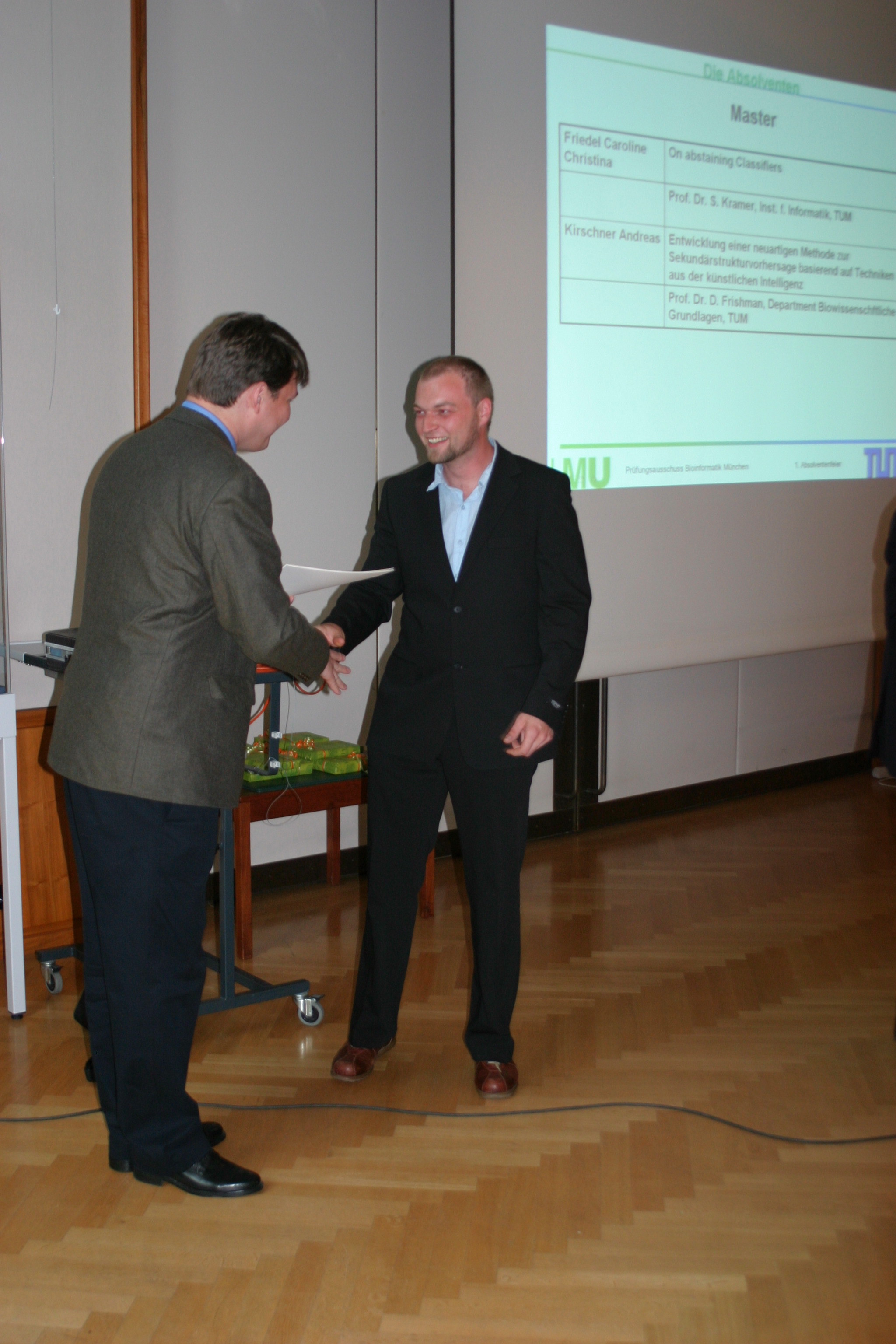 Übergabe des Master-Zeugnisses an Herrn Andreas Kirschner M.sc. in Bioinformatik