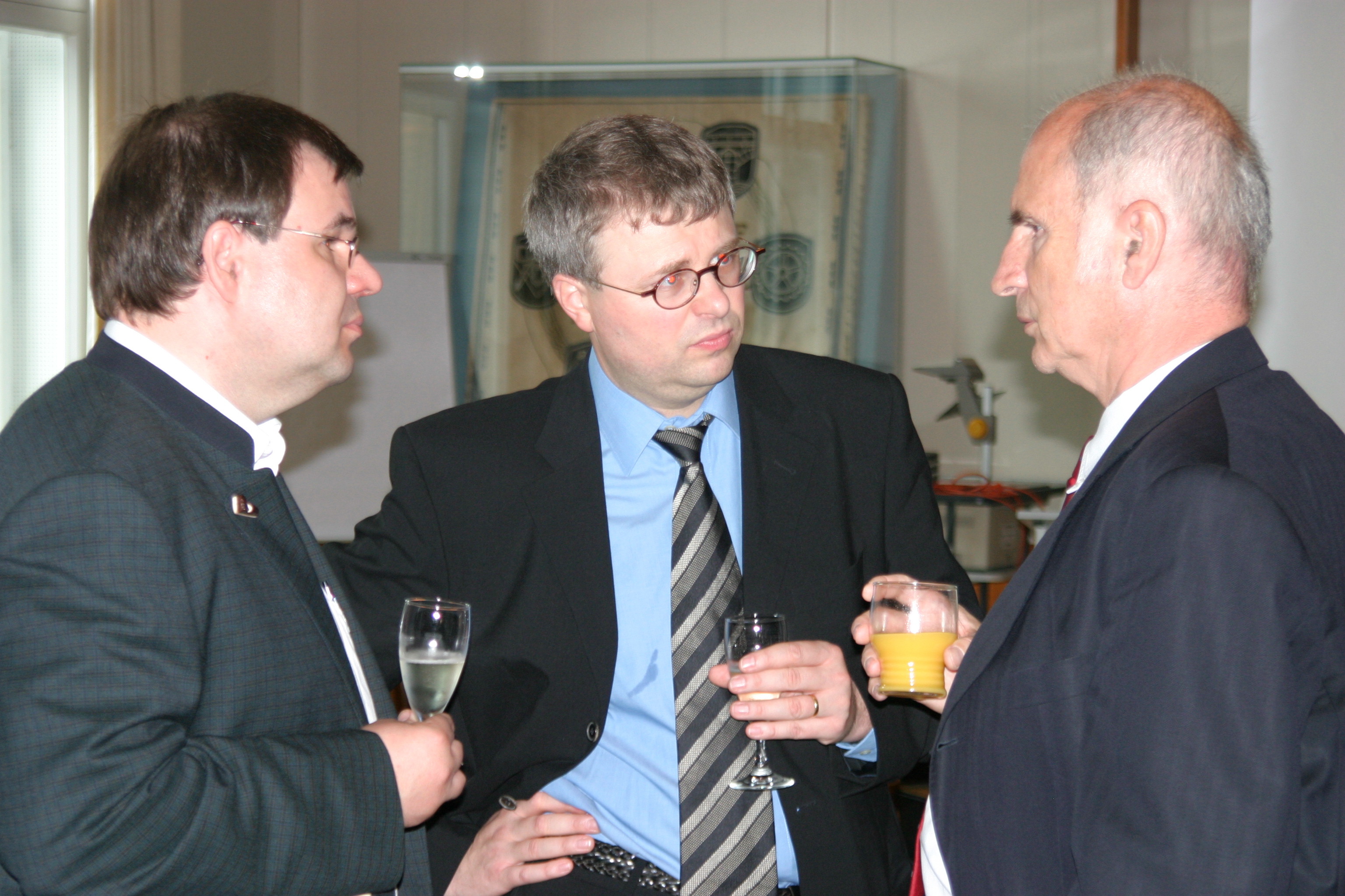 (Von Links) Prof. Dr. V. Heun, Prof. Dr. R. Zimmer, beide Lehrstuhl für Bioinformatik LMU im Gespräch mit Dr. Phil. Werner Schubö, Prorektor der LMU